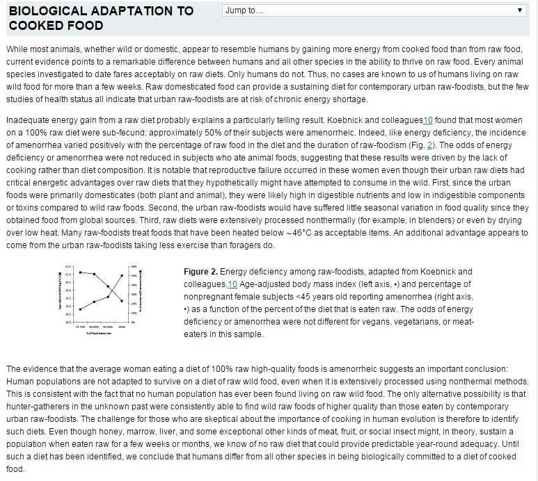 This chapter doesn’t actually comment on whether there could be health benefits to eating a diet higher in uncooked foods. It does focus on highlighting the fact that we appear to be particularly adapted to cooking. So, I’d say it does not support a 100% raw vegan diet as a worthy endeavor.